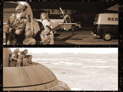 Elvis’ supporters take a helicopter to watch the race from the air above the desert.